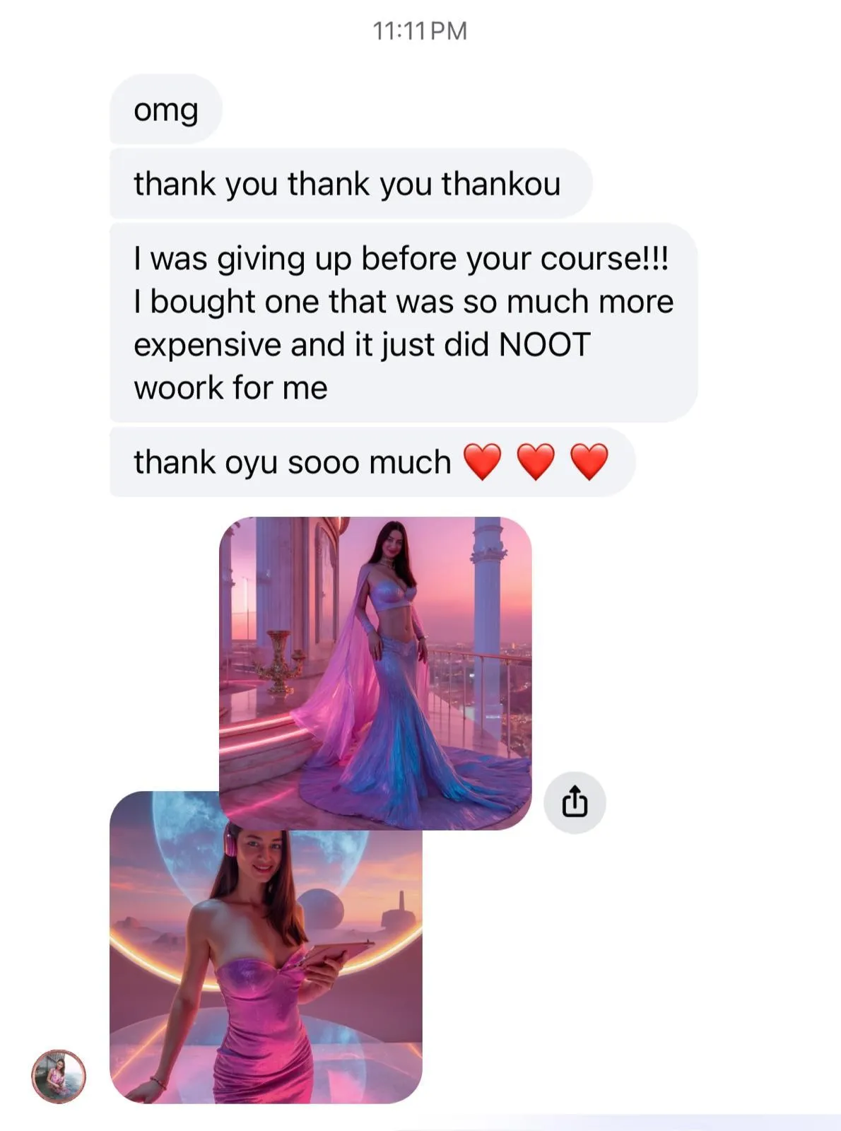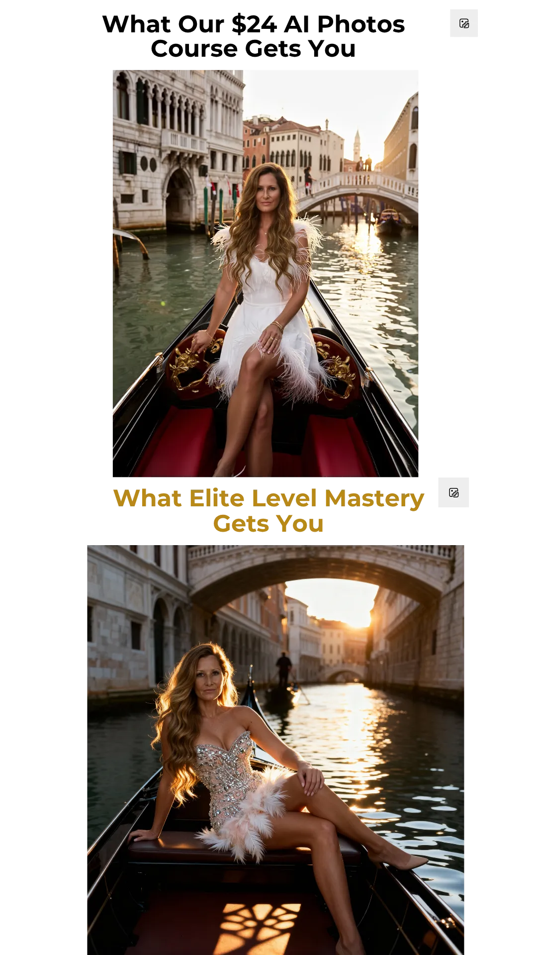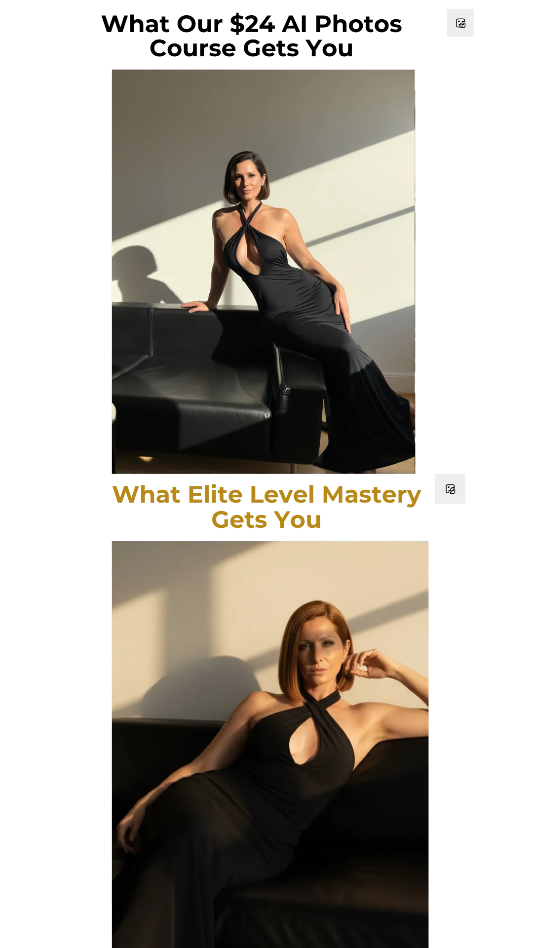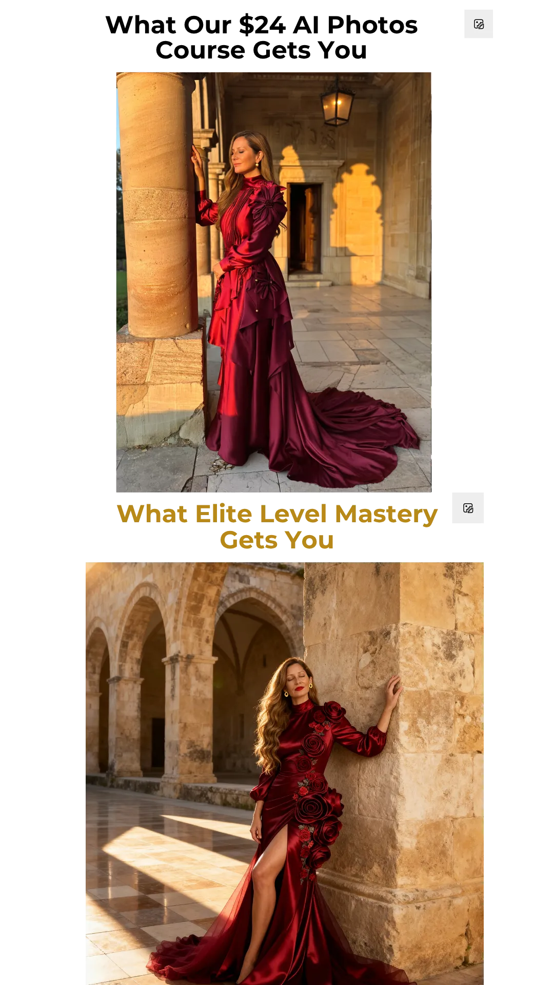 Think of it like this: the foundation course gets you started with AI imagery. This gets you imagery that rivals luxury photoshoots while building a complete business system around it. Both are valuable - this one just takes you further.
