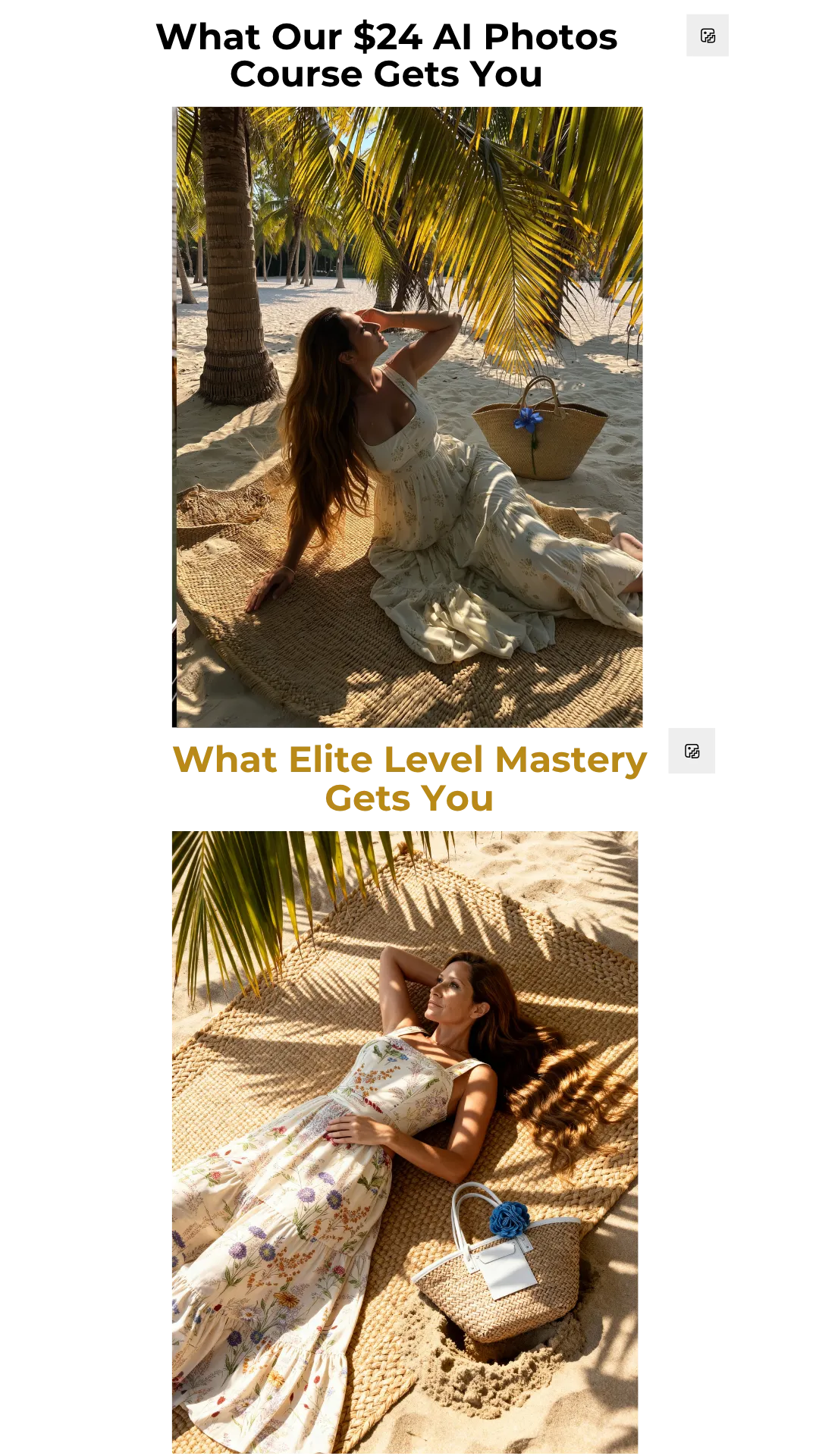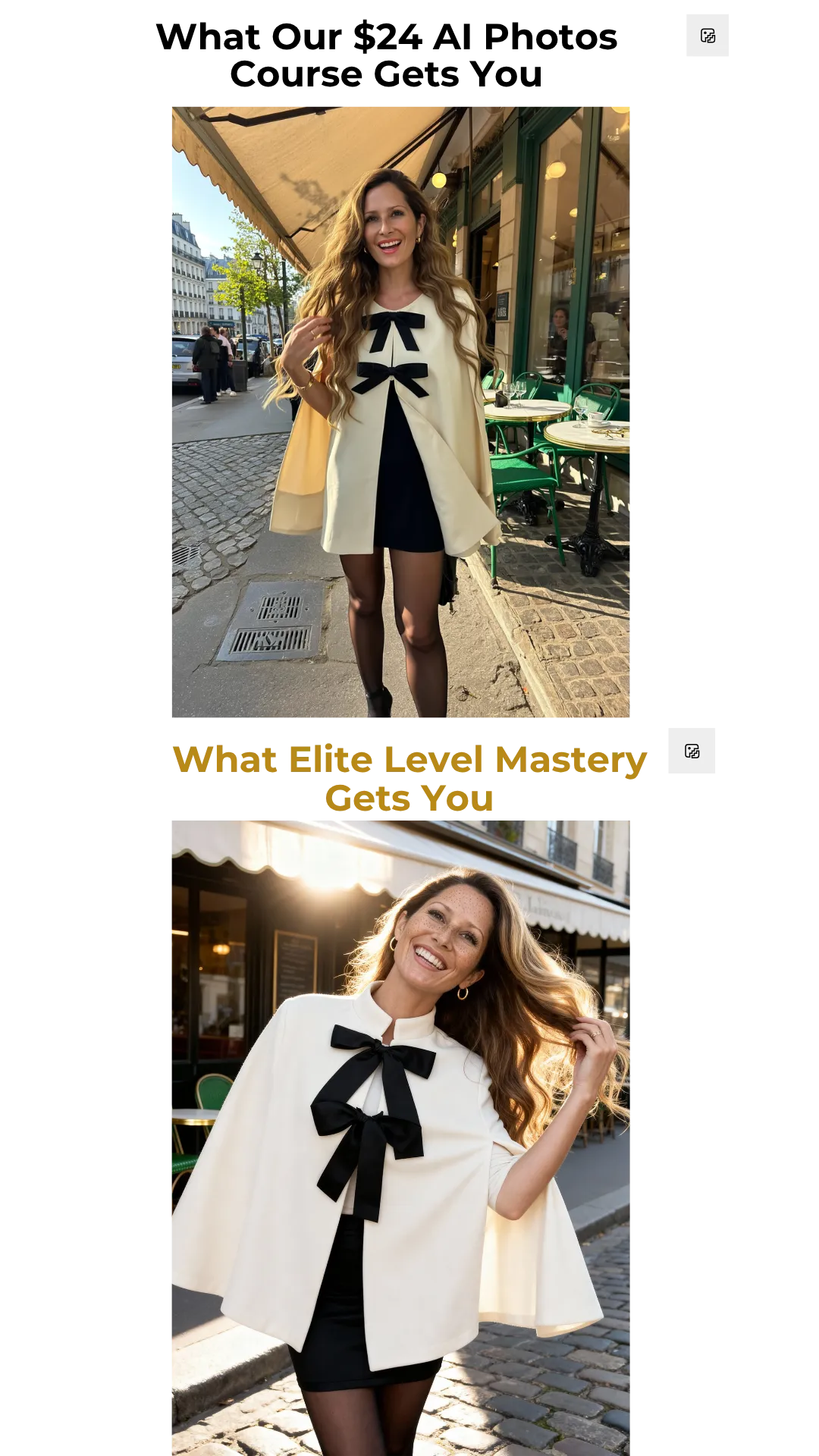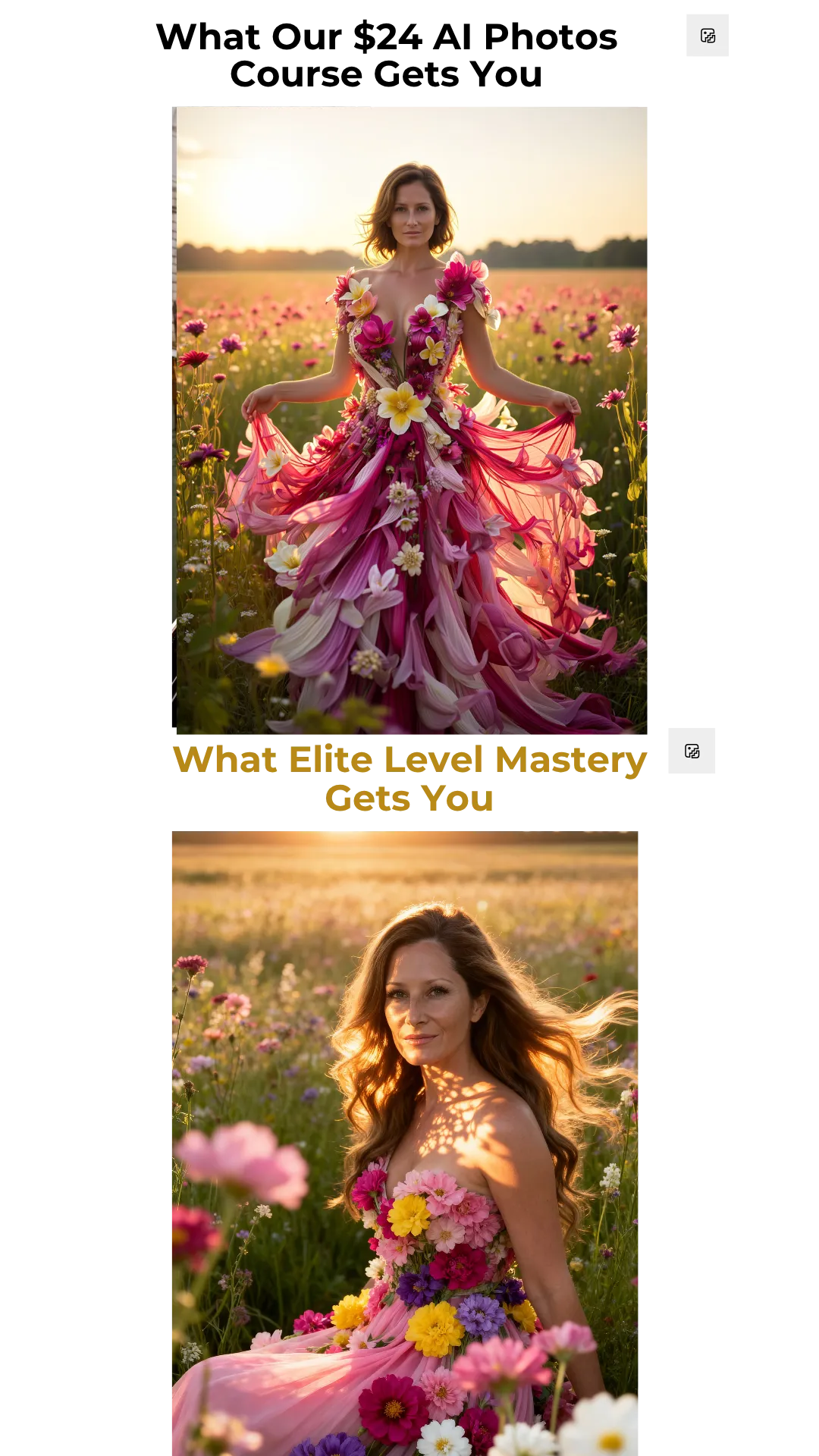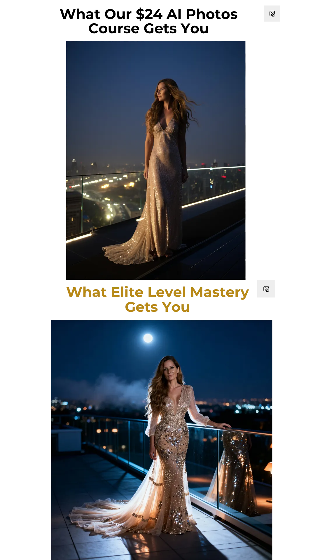 Think of it like this: the foundation course gets you started with AI imagery. This gets you imagery that rivals luxury photoshoots while building a complete business system around it. Both are valuable - this one just takes you further.